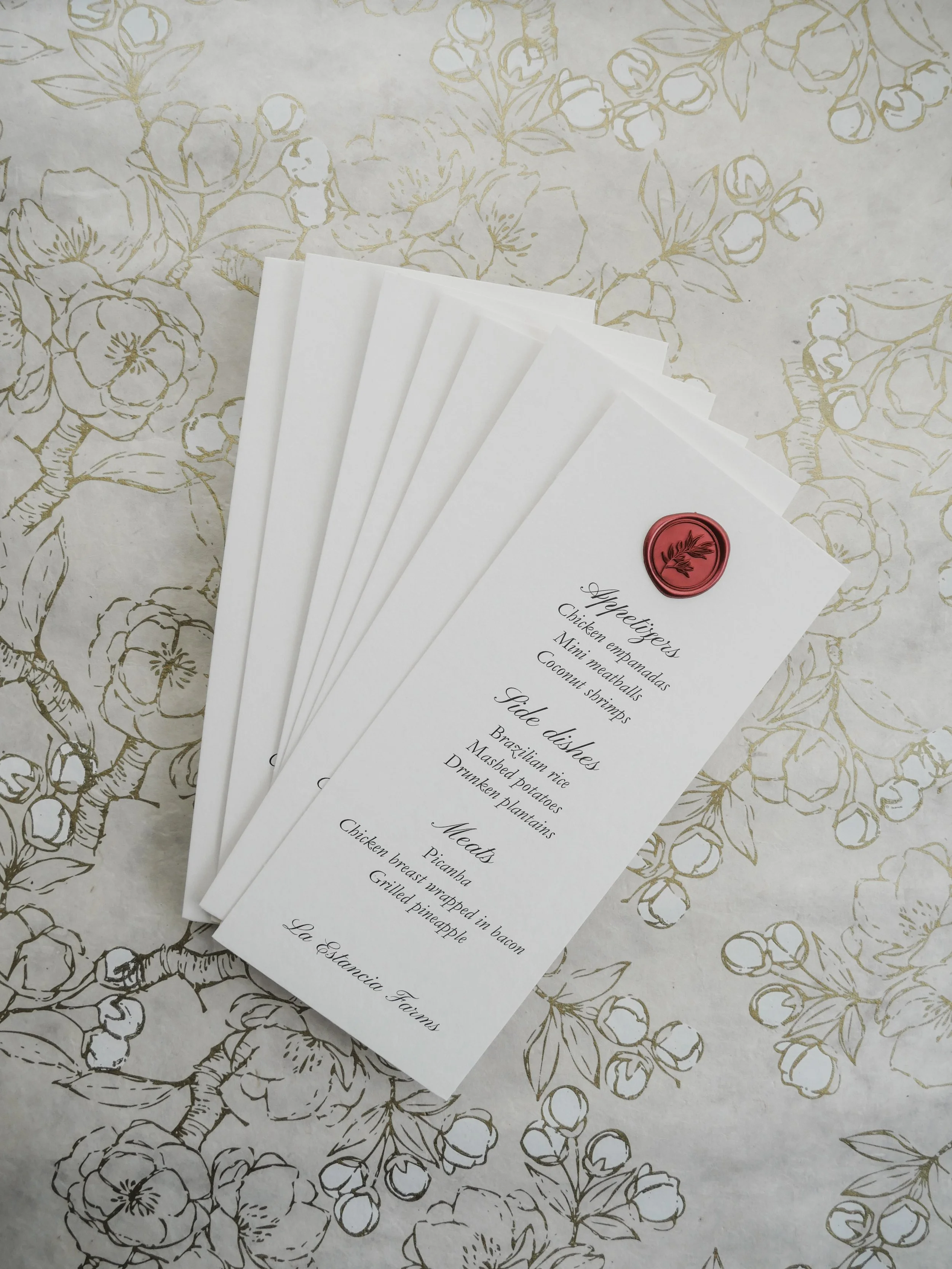 Our calligraphy services include place cards written by hand so each guest feels welcomed and seen. Seating charts and table displays that feel elegant, cohesive, and personal. Welcome signs and directional signage that set the tone from the very first moment. Order of the day signs that guide guests gently through the wedding. Menus that feel like keepsakes rather than paper goods. Custom quotes, vows, and meaningful phrases that deserve to be displayed beautifully.