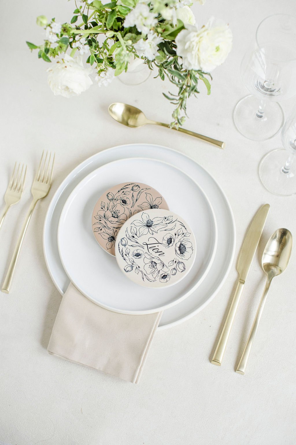 Presenting our coaster that is versatile and can create magic on your tablesetting and decor. This small piece of art works both as a souvenir and place card. Whatever you chose, the coaster will surely be something your guests can take home and remember your special day.